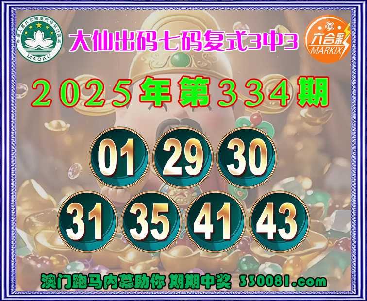 334期:《大仙出码》 😍七码复式3中3😍