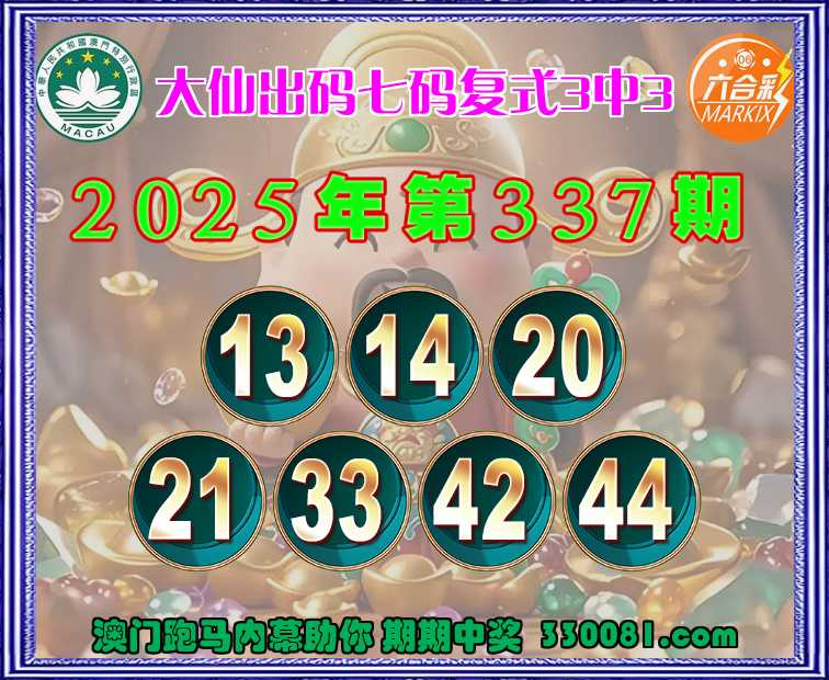 337期:《大仙出码》 😍七码复式3中3😍